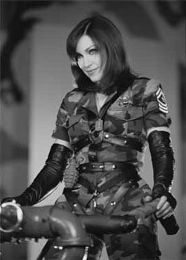 The American Life single is also the subject of a brilliant new video from the pioneering multi-media visionary, an artist who single handedly invented the short music film medium. In a stunning collaboration with director Jonas Akerlund, American Life expresses a panoramic view of our culture and looming war through the view of a female superhero portrayed by Madonna set against a backdrop of current cultural obsessions. It's a penetrating examination of our national psyche. The video is scheduled to air the first week in April.