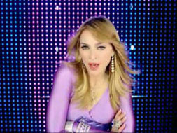 Madonna does some of the same Hung Up dance moves, but on roller skates. Her dance scene is very yoga-like, and it's in an enclosed cage, like thunderdome. Her best dancing in a long time.