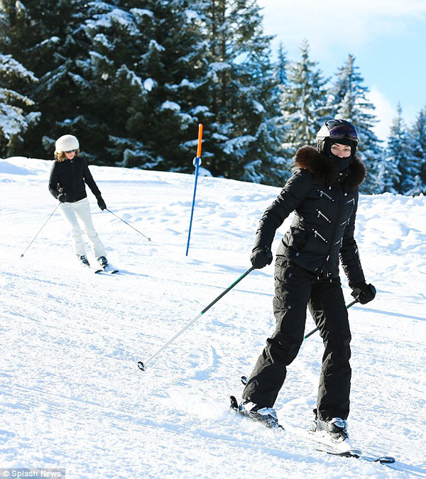 While David and Mercy strapped on their skis ready for a day on the piste, Rocco stuck himself to a snowboard and threw himself down the slopes with aplomb.