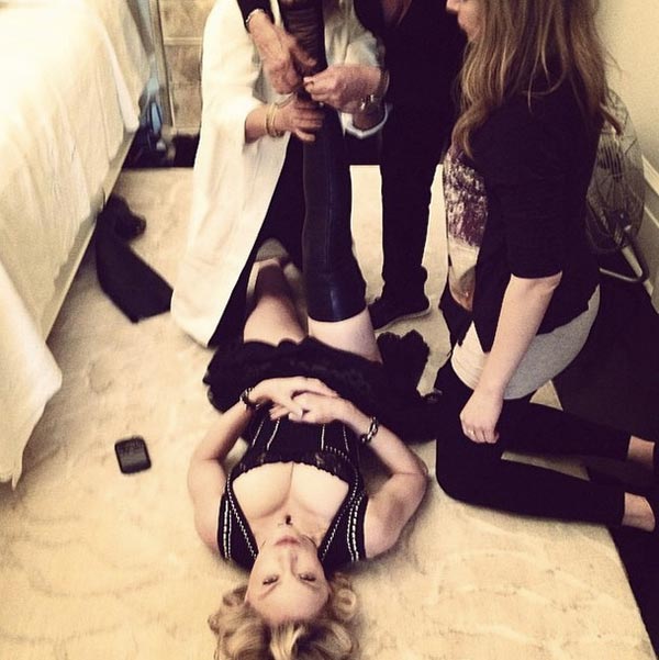 Tisci posted on his Instagram page a photo of Madonna lying on the floor at the event, saying. "QUEEN M IN THE HOUSE," Tisci said on Instagram. "@madonna @givenchyofficial#love #foreveryoung #family #gang