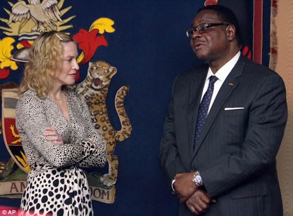"Thank you for welcoming me here. I was a big fan of your brother. He was very kind to us," Madonna said of Mutharika's older brother Bingu wa Mutharika.