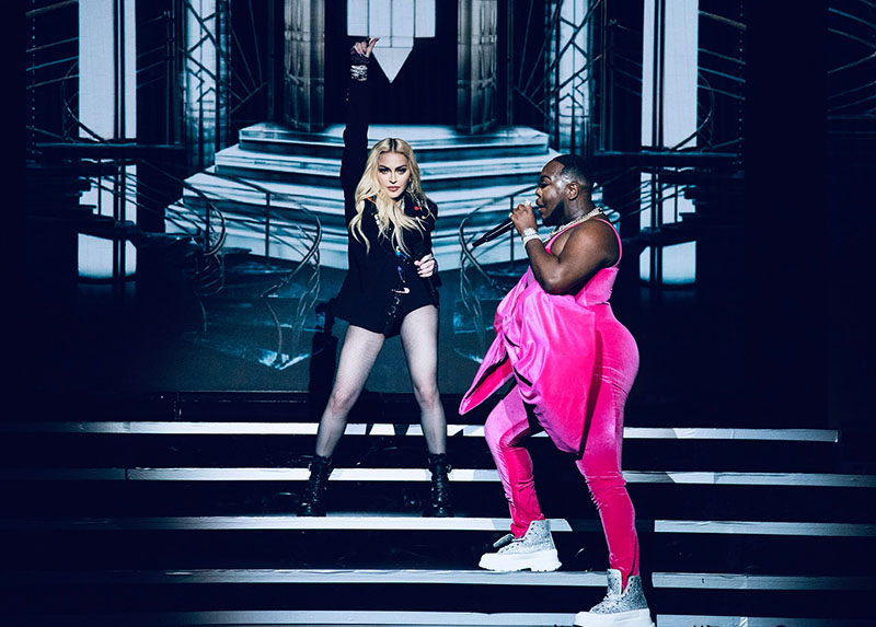 The spectacle kicked off with appearances from RuPaul's Drag Race alums Bob the Drag Queen — who emceed — as well as Violet Chachki, Laganja Estranja and Pixie Aventura, who performed to some of Madge's biggest hits, from "Vogue" to "Justify My Love." Also making a cameo throughout the evening: Madonna's 16-year-old son David, who joined for some comedy and dance.