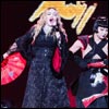 The concert is split into roughly four sections, the first of which has a pan-Asian theme, with Madonna descending from the sky in a kimono-like robe and performing martial arts moves with her dancers.