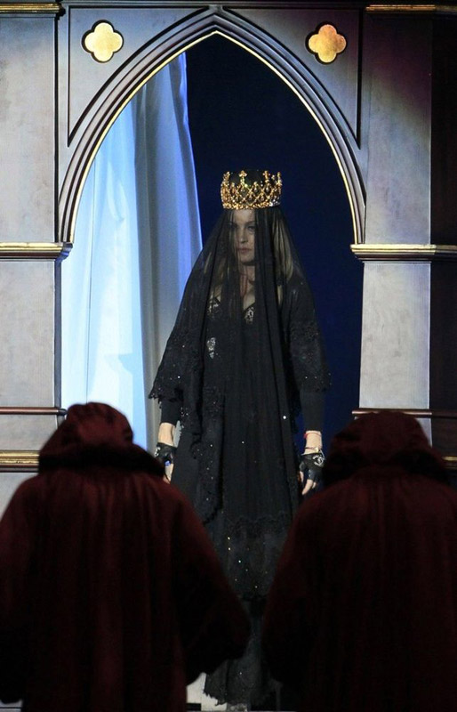 While Transgression was visually stunning, it didn't make the crowd dance. That changed for the Prophecy segment. You can say what you want about the Express Yourself/Born This Way mash-up, it certainly took away the doubt, if anyone still had about Gaga's song being virtually similar. Only Madonna fans will recognize M's typical tongue-in-cheek irony. The GMAYL performance was an grotesk attack on the senses: dancers and majorettes everywhere on stage and the catwalk, the drummers in the air, the heavy beat... Turn Up The Radio was a highlight, with everyone finally jumping and dacing like crazy. Open Your Heart didn't really live up to its expectations that I had for its first live performance in 22 years, except for the ultra-sweet moment where she shouted "Where's my boy" and Rocco came running from between the group of dancers. As the crowd cheered on, he ran over the catwalk with his mum putting her arm around his shoulder. Which 12-year old can tell such a story?